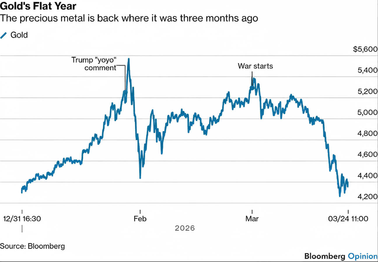 A couple of weeks into the Iran war, traditional safe haven assets have diverged. Bonds and gold have dropped, while the US dollar has rallied hard.